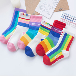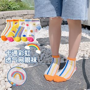 彩虹儿童袜子网眼棉韩版ins潮袜男女童彩虹袜中大童...