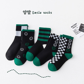 2022儿童袜子批发春秋新款棋盘格笑脸中筒袜男童女...