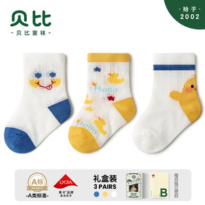 贝比儿童网眼袜2022新款小黄鸭儿童夏季袜子3双/...