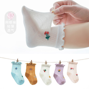 春夏新款女童袜薄款儿童网眼袜木耳边宝宝袜婴儿公主袜...