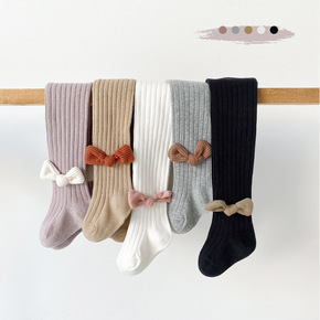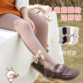 22年春秋儿童连裤袜竖条纹精梳棉女童打底裤蝴蝶结透...