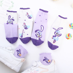 批发新款儿童袜子春季女童卡通可爱紫色1-15岁宝宝...