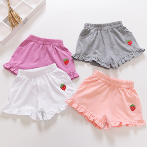 2022夏季新款韩版女童短裤 绣花草莓真口袋童裤 ...