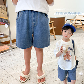 现货2022夏款儿童牛仔短裤重工洗水中小童超宽短裤...