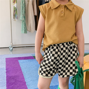 22夏新款中小童男女童韩国ins黑白格子透气休闲直...