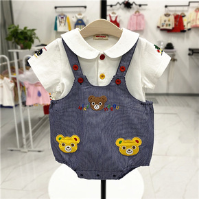 日系Mikiclever22夏新款小熊图案水洗条纹...