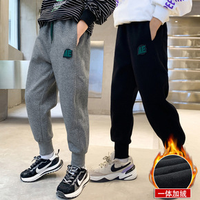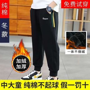 棉男童裤子儿童秋冬款加绒加厚一体绒中大童宽松休闲男...
