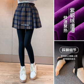女童打底裤加绒外穿冬装大童裤子加厚儿童洋气裙裤假两...