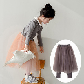 儿童假二件网纱裤裙秋冬季童装童裤新款韩国多色打底修...