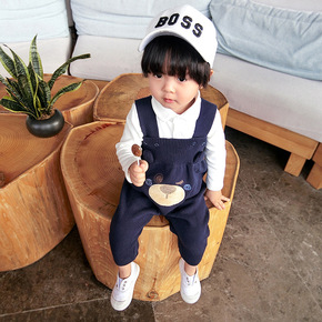 宝宝背带裤春秋长裤新款男童洋气灯芯绒连身裤小童百搭...
