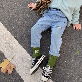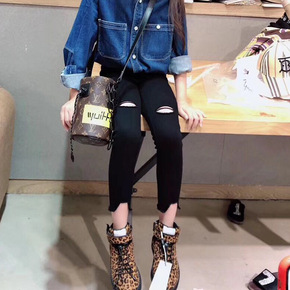 女童牛仔裤春装新款韩版弹力铅笔裤中大儿童破洞修身牛...