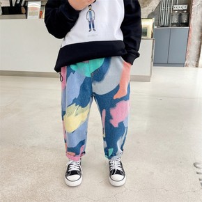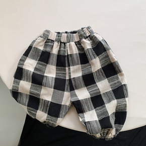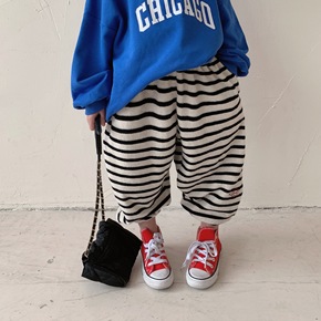 儿童裤子韩版女童休闲毛巾棉条纹灯笼裤男宝宝宽松舒适...