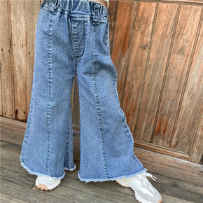 女童牛仔裤春秋装2022新款韩版儿童大童喇叭裤女孩...
