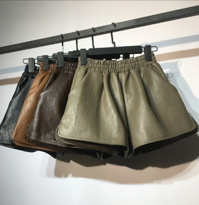 女童高腰皮短裤2021年秋冬新款韩版PU宽松阔腿裤...