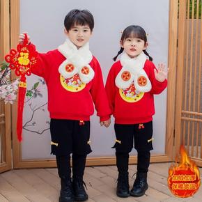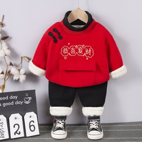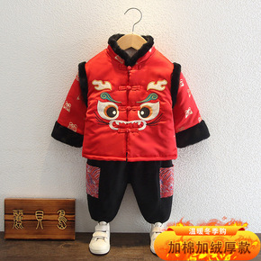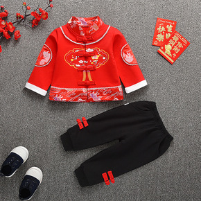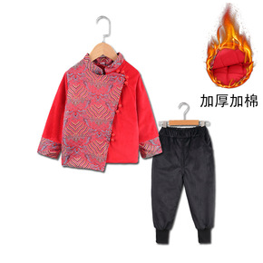 男童唐装秋冬风加绒套装儿童拜年服宝宝周岁礼服男孩过...