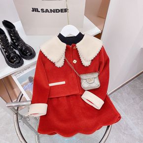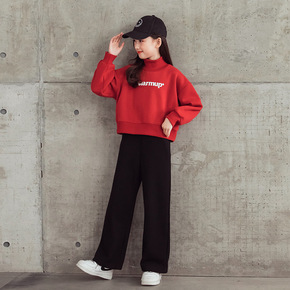 女童套装2021新款秋冬红色卫衣加绒裤子新年装洋气...