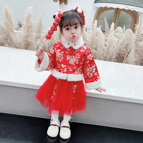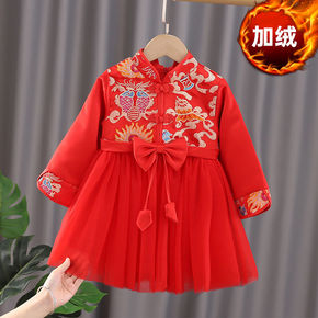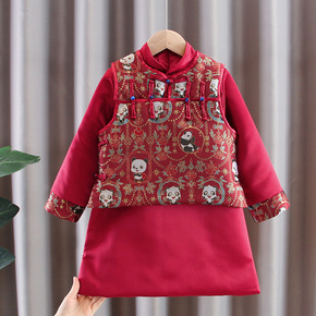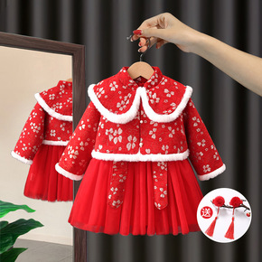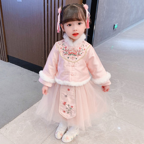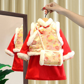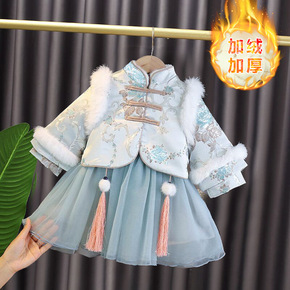 女童汉服冬款儿童女宝宝风唐装旗袍过年喜庆拜年服两件...