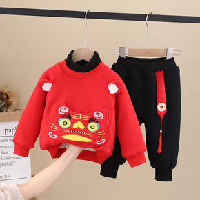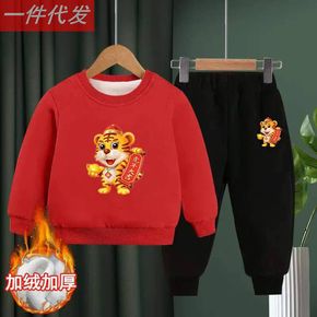 新年款儿童卫衣亲子装拜年服加绒卫衣中国风2022虎...