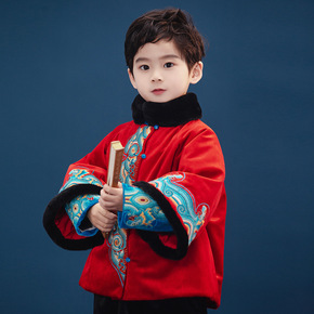 汉服男童拜年服秋冬季儿童古装唐装风加厚宝宝周岁礼服...