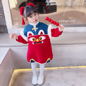 虎儿童拜年服男女唐装新过年汉服旗袍元旦表演服幼儿园...