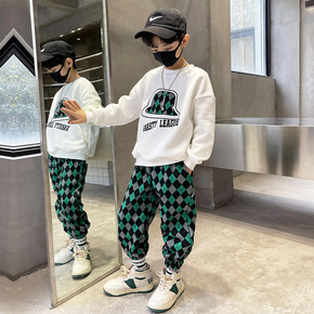 儿童套装男2021秋季新款男孩时尚卫衣女宝宝洋气两...
