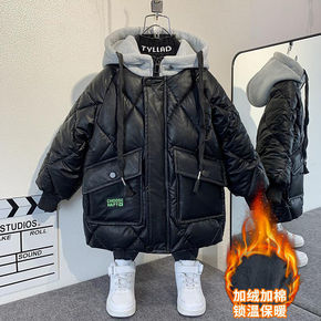 男童冬季棉衣中长款新款儿童加绒加厚棉袄洋气休闲皮外...