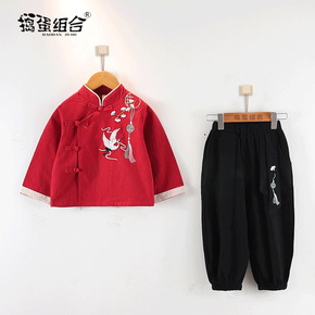 童装汉服男童风古装男宝宝周岁礼服秋装儿童唐装民国风...