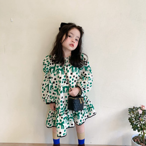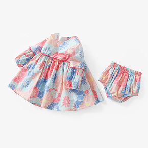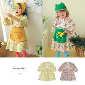女童裙子春季韩版新款多彩花朵活力公主裙长袖拼接三角...
