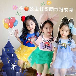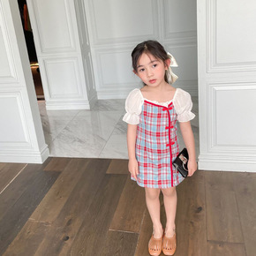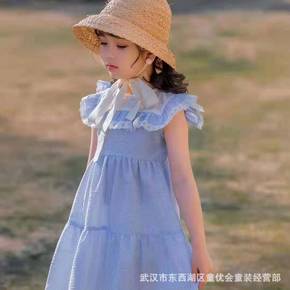 2022夏季新品童裙批发欧美风女童连衣裙短袖针织棉...