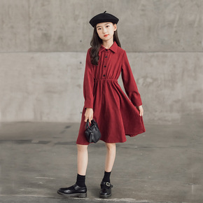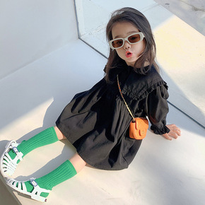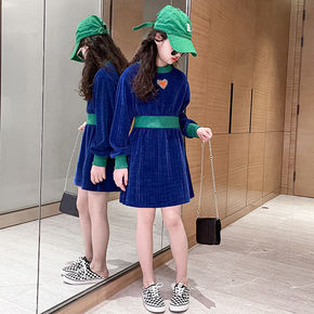 女童裙子娃娃领宫廷加绒加厚连衣裙公主裙21秋冬装新...