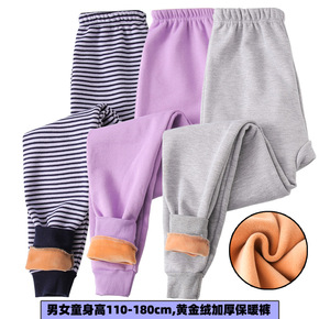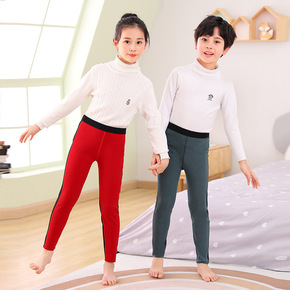 儿童保暖裤高腰德绒秋裤加绒男童女童纯色秋冬中大童加...
