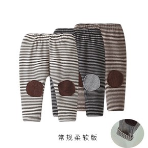 春秋新款婴儿加绒保暖裤韩版条纹补丁打底裤宝宝外穿弹...