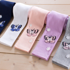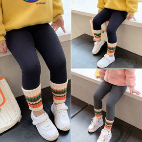 春秋季薄款中小女童弹力打底裤宝宝装纯色棉裤儿童装紧...