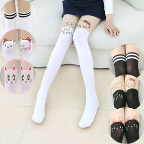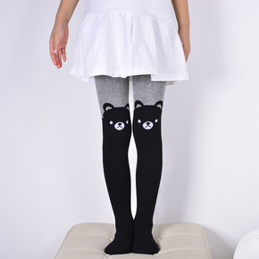 童装春秋新款儿童连裤袜连体假两件可爱猫咪兔子时尚拼...