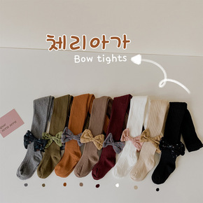 秋季新款儿童打底裤精梳棉蝴蝶结女童连裤袜抗起球竖条...