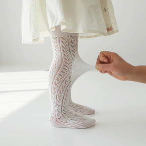 新款春夏季棉质网眼薄款女童连裤袜 儿童白色棉宝宝九...