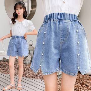 儿童牛仔裤女童牛仔短裤2022新款韩版中大童高腰薄...