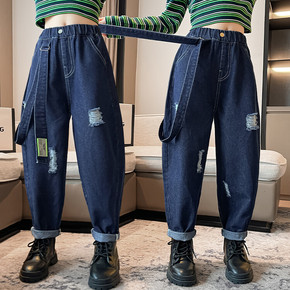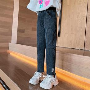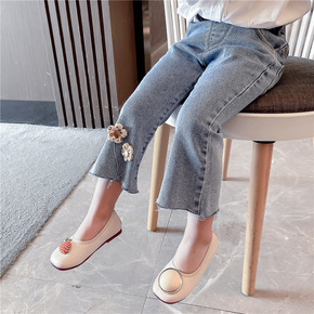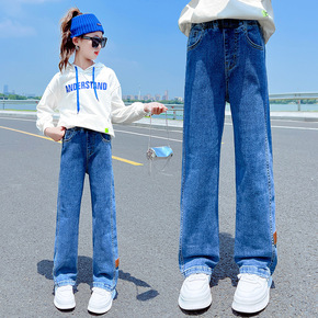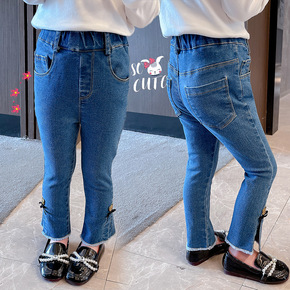 女童裤子春秋外穿小学生牛仔裤小女孩韩版时髦洋气喇叭...