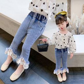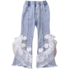 童牛仔裤喇叭裤春款2022新款中小童蕾丝花边韩版儿...