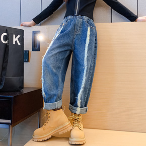 儿童牛仔短裤夏季女童破洞短裤中大童女宝宝潮裤女学生...