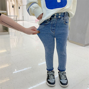 女童牛仔裤春秋款小童裤子洋气女宝宝修身儿童外穿小脚...
