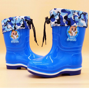厂家直销毛口加绒加厚皮口儿童雨鞋中筒水靴卡通彩色外...