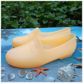 仿牛筋胶鞋雨鞋软胶工地水鞋防水低帮塑胶男士黄色塑料...