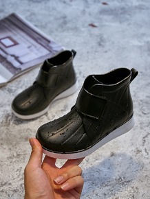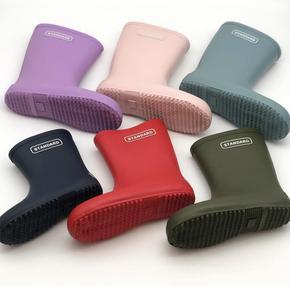 时尚短筒魔术贴儿童雨鞋纯双色简约亲子男女软厚底防滑...