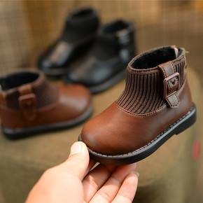 2021冬季新款男童韩版儿童加绒短靴子女童低筒侧拉...