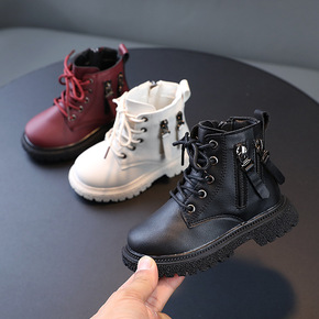 秋冬季新款童鞋儿童靴子马丁靴外贸男童皮面低筒短靴女...