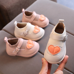 2021春秋季新款女童鞋子飞织爱心公主鞋小女孩皮面...