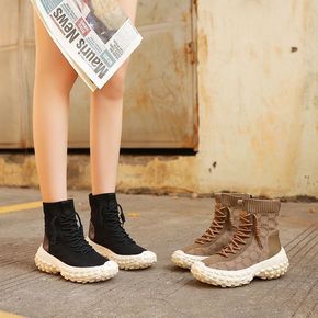 马丁靴女夏秋薄款弹力袜靴2022年新款厚底增高针织...