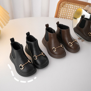 男童马丁靴2022秋冬季新款英伦风儿童短靴真皮单靴...