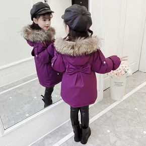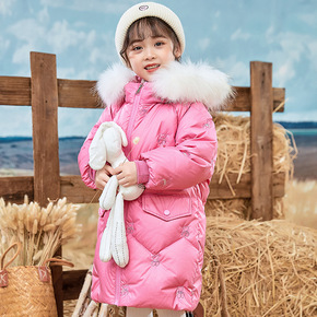 童装羽绒服女童中长款加厚保暖真毛领中小童外套宝宝装...